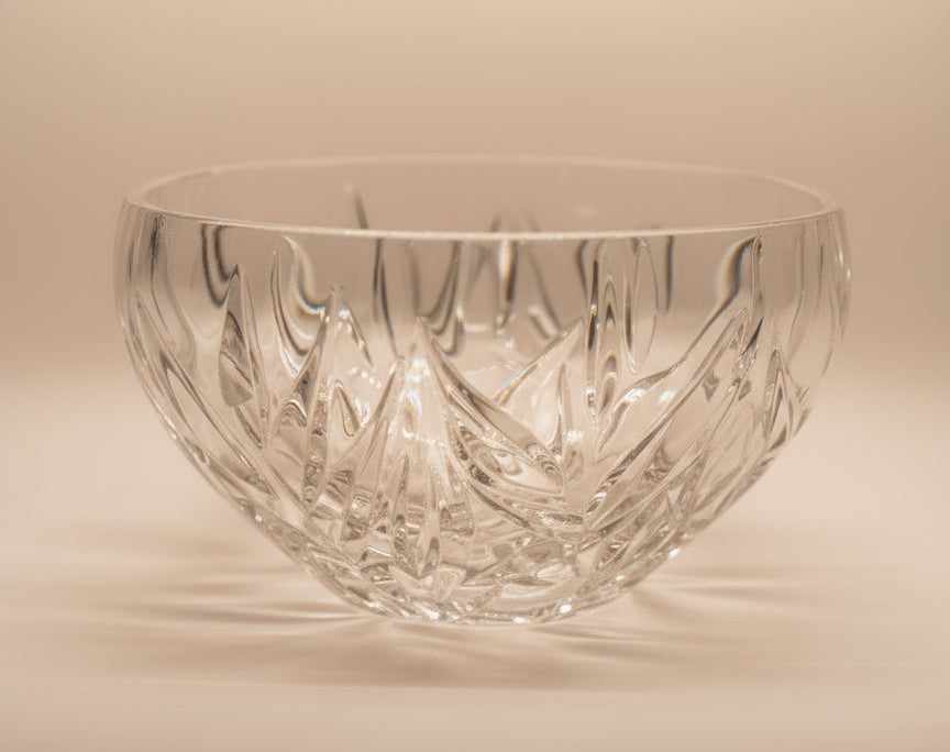 Pieza de cristal de plomo alemán con diseño facetado y patrón de estrella en la base que captura la luz con elegancia. Descontinuado (1993–2010), este bowl coleccionable es perfecto para mesas festivas, fruteros o como regalo emocional que transmite refinamiento clásico y exclusividad.