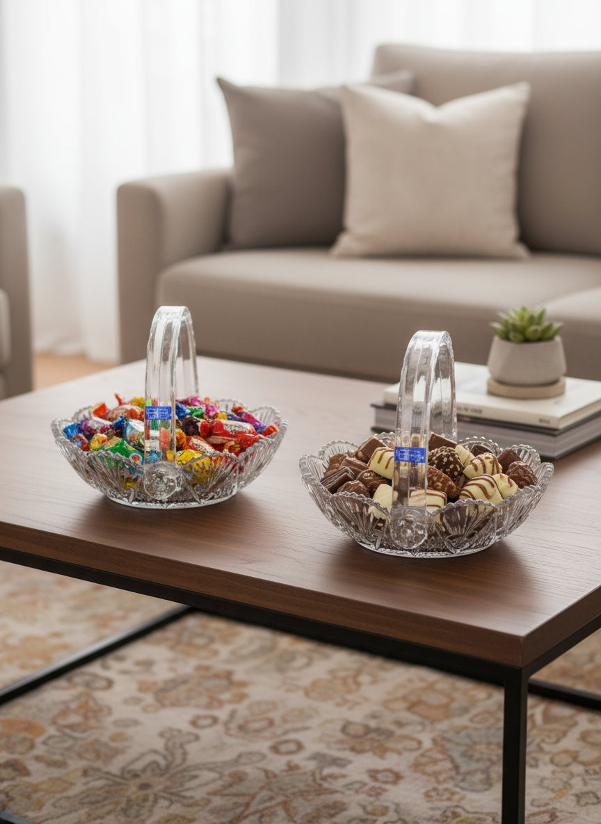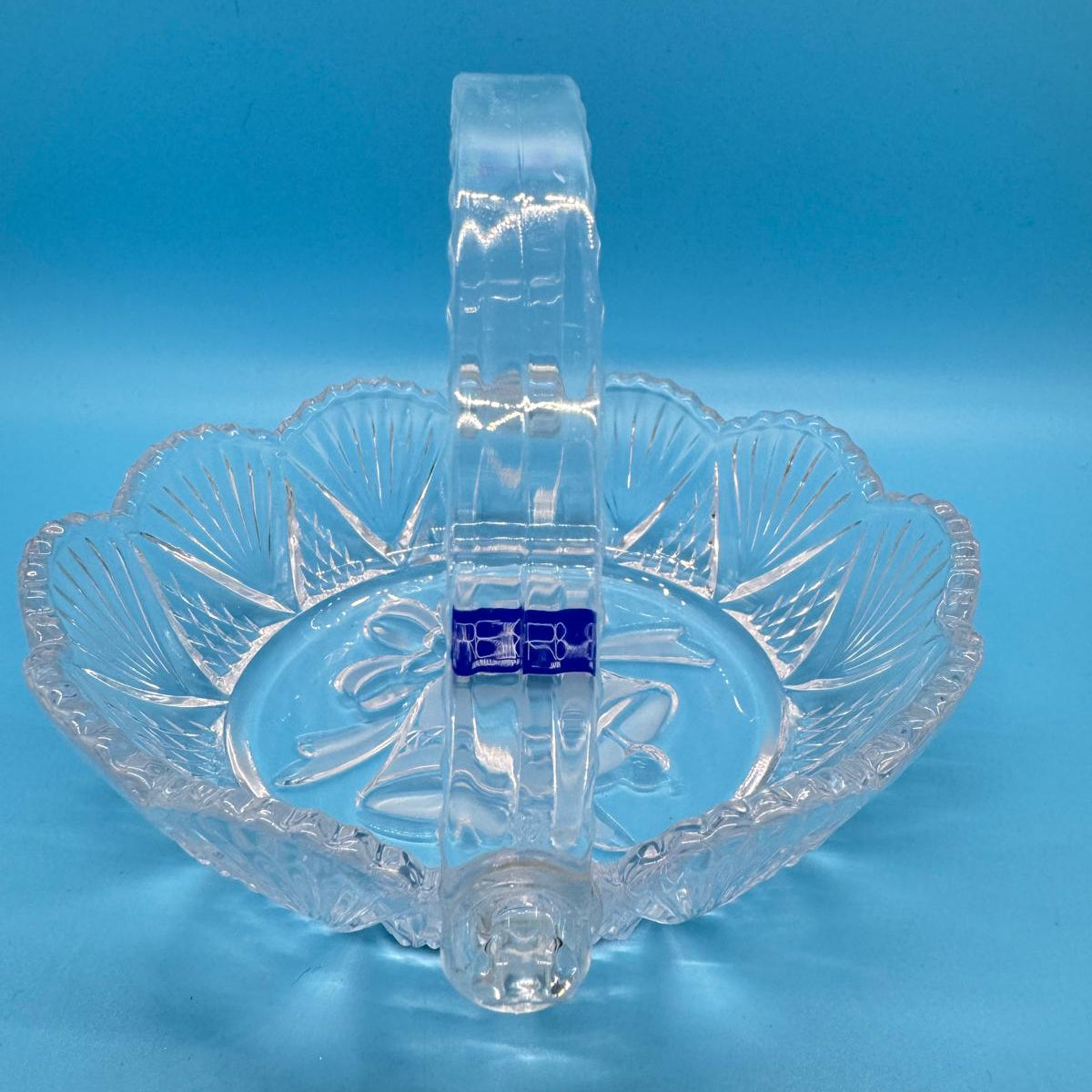 Canasta de vidrio grabado, diseño Studio Nova. Ideal para dulces, velas o decoración navideña.