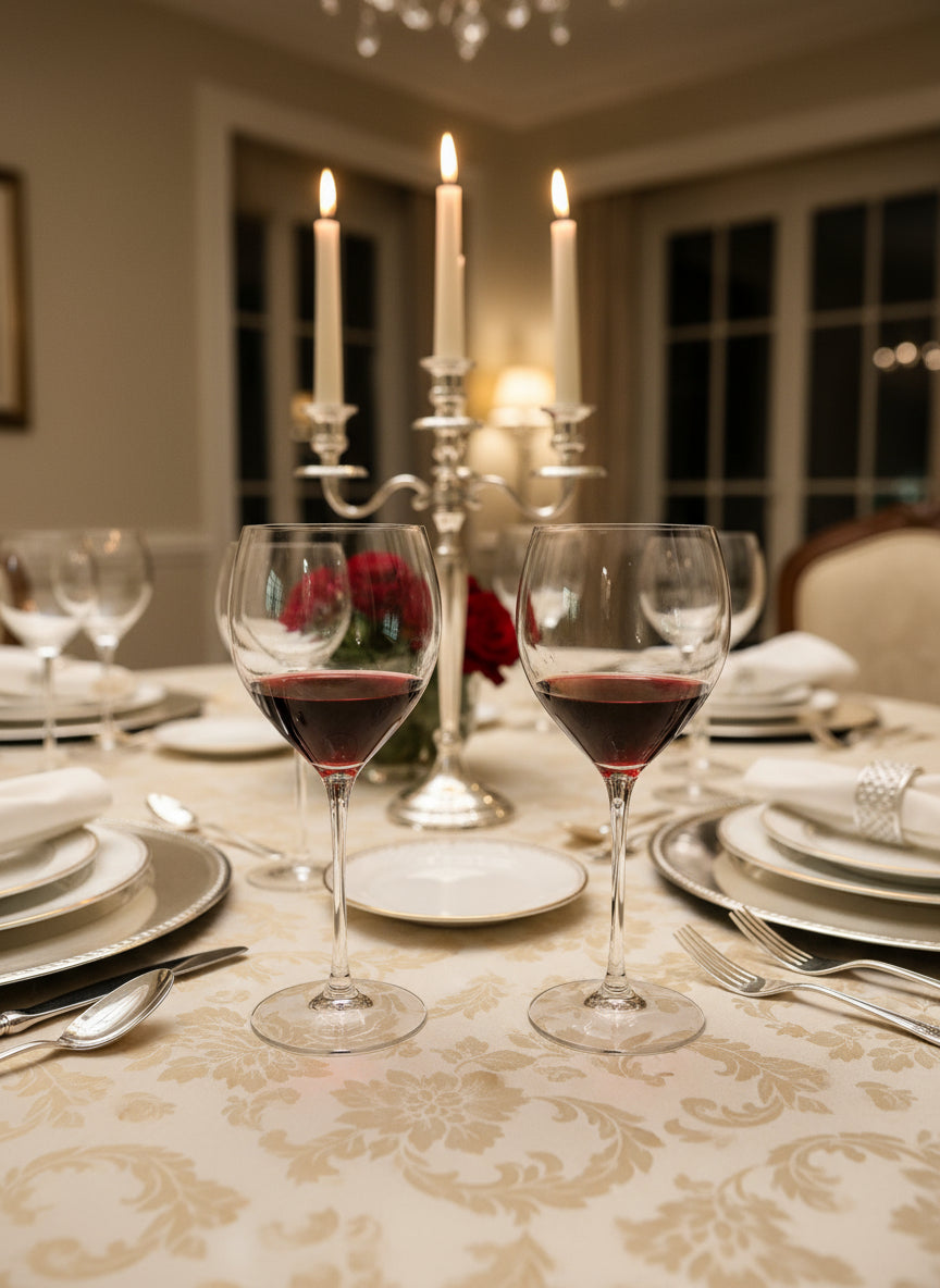 Copas de cristal para vino tinto con tallo largo y estilizado. Diseño moderno y elegante, perfectas para cenas formales o celebraciones especiales.