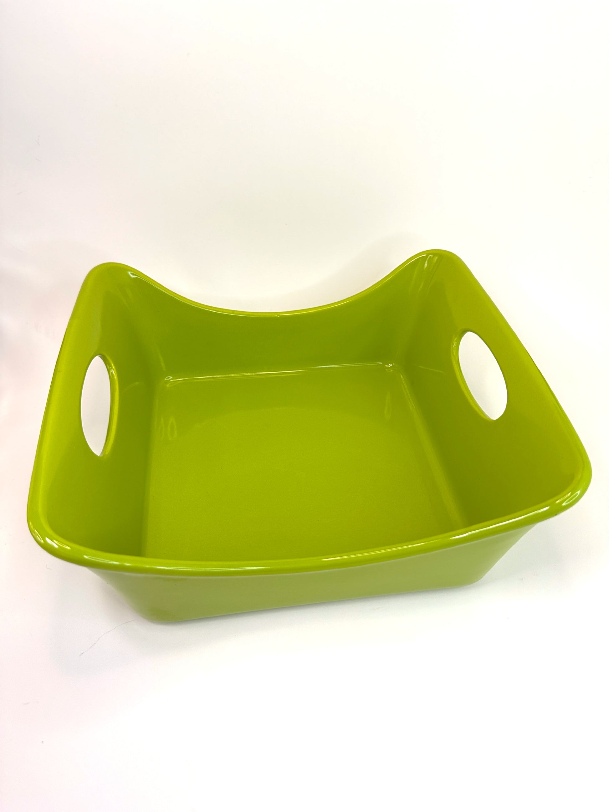 Esta bandeja rectangular en tono verde intenso es una invitación a transformar lo cotidiano en especial. Su diseño moderno, con bordes suavemente curvados y asas integradas, combina practicidad con una estética vibrante que alegra cualquier espacio.