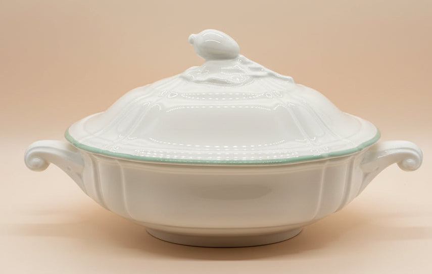 Bowl para Sopa porcelana fina blanca con distintivo pomo de fruta en la tapa
