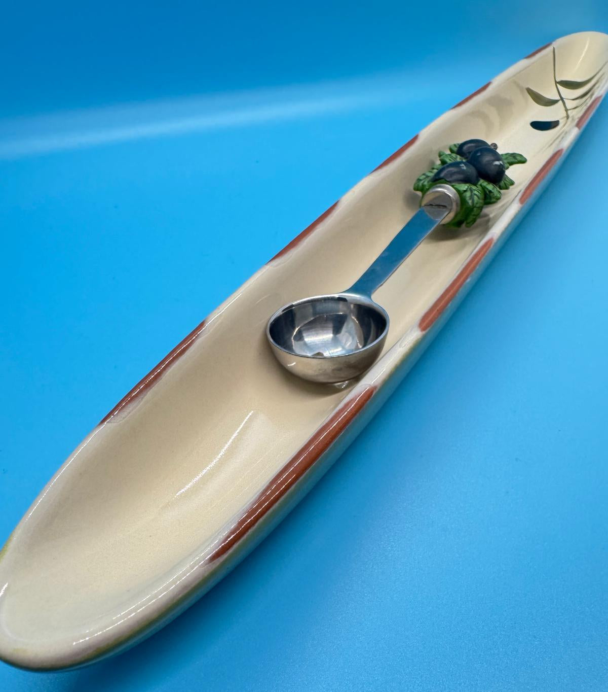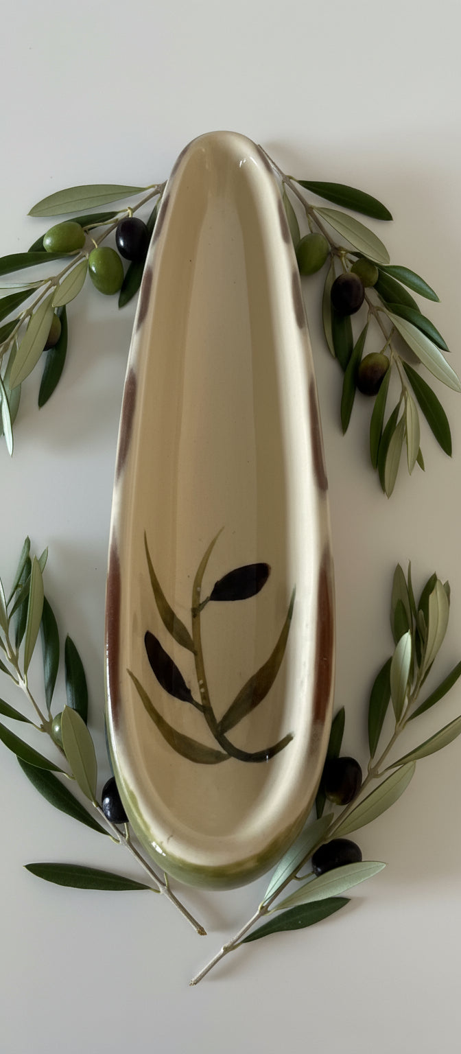 Plato cerámico largo –para servir olivas, frutos secos.