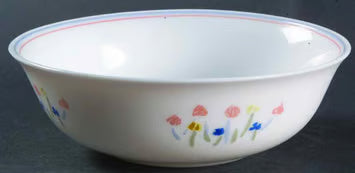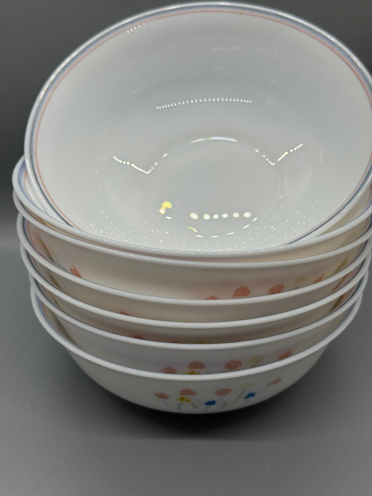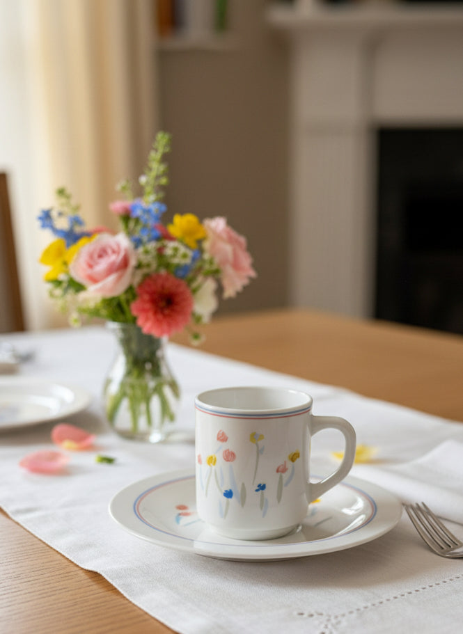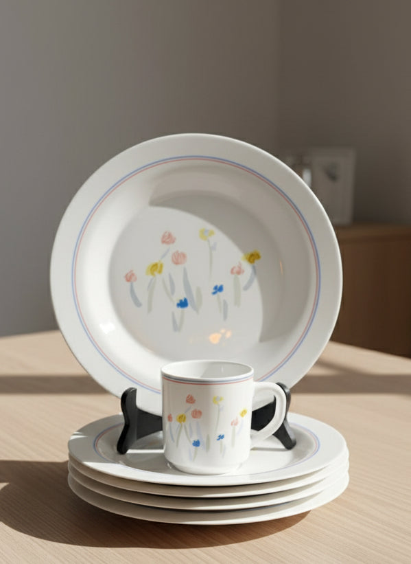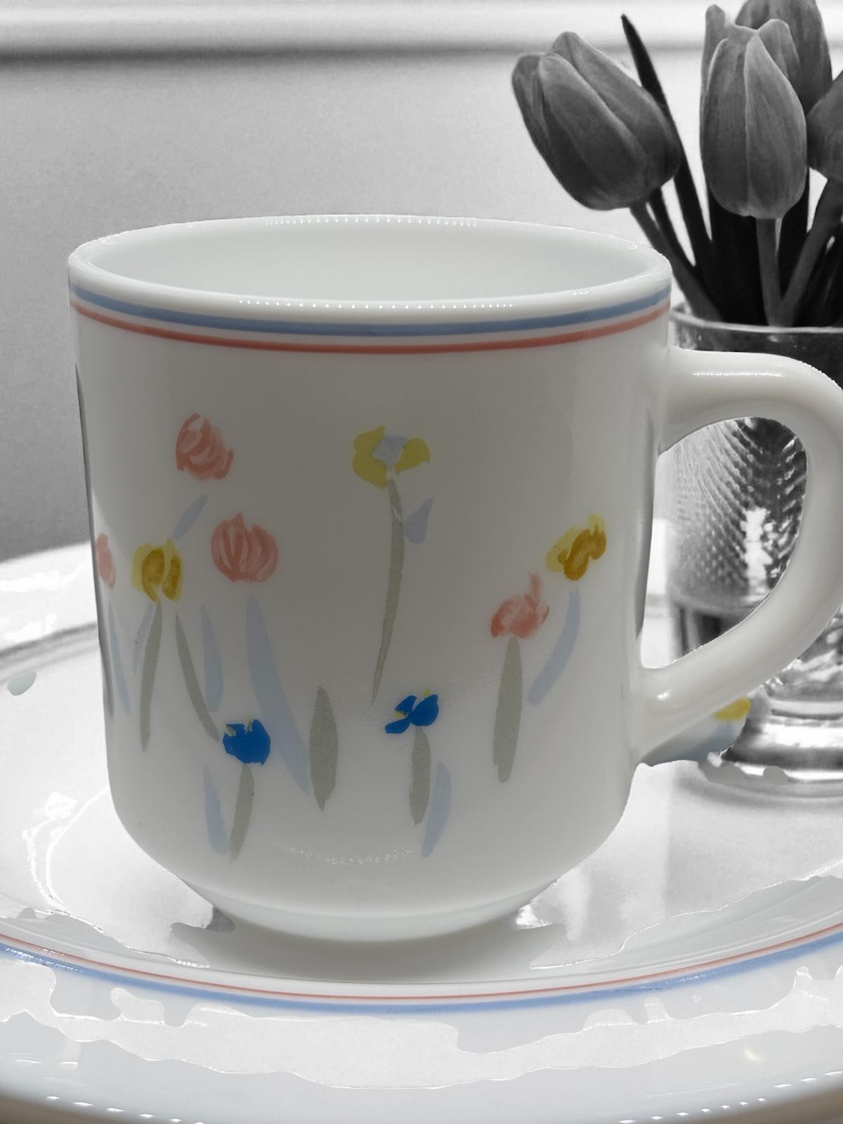 Colección francesa de vidrio lechoso con flores en tonos pastel que captura la elegancia clásica de las mesas europeas. Resistente a roturas y apta para microondas y lavavajillas. Diseño funcional y decorativo que combina belleza atemporal con durabilidad práctica. Pieza vintage descontinuada, perfecta para coleccionistas y amantes del estilo retro.